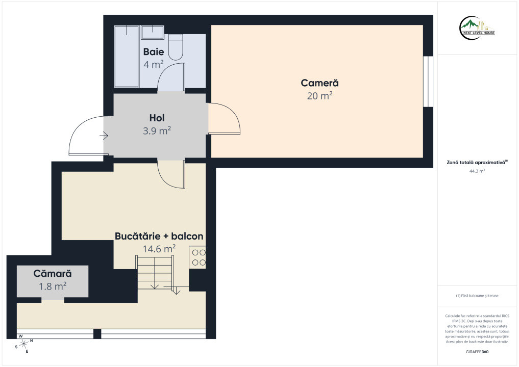 Proprietatea are o suprafata utila de 39,1 mp + balcon de 5,2mp, fiind compusa din: hol, camera, bucatarie, baie, camara si separat, la subsol o boxa depozitare de aproximativ de 6 mp.