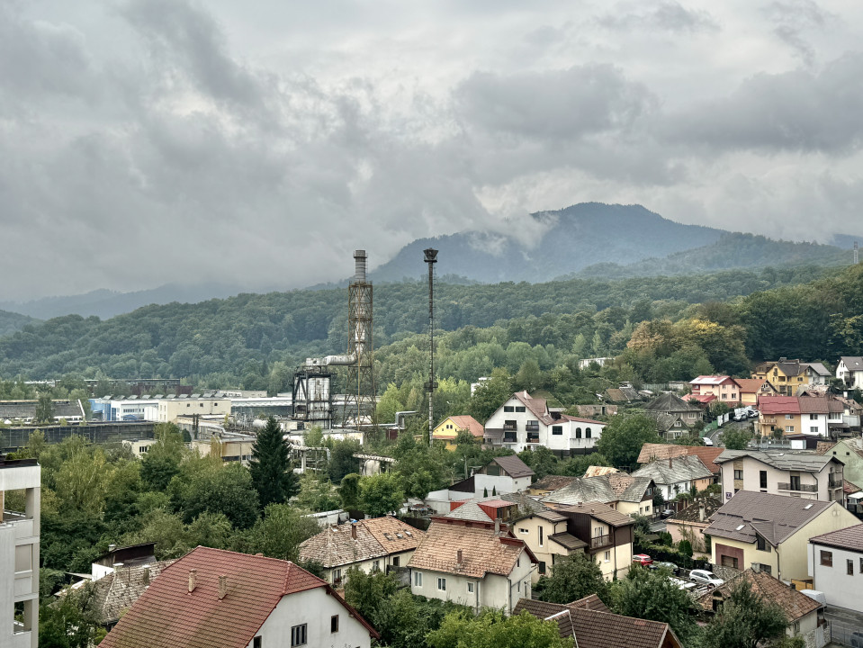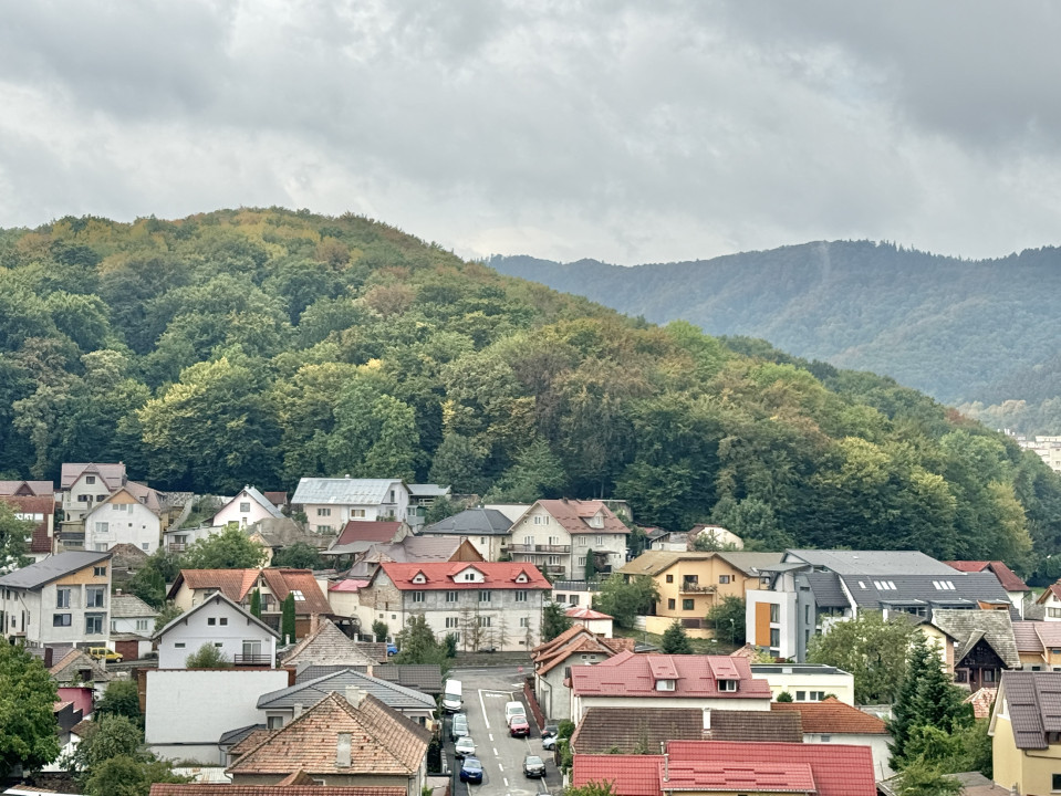 Apartamentul se află într-o zonă liniștită, cu o vedere spectaculoasă la munte, oferind un mediu relaxant și confortabil.
