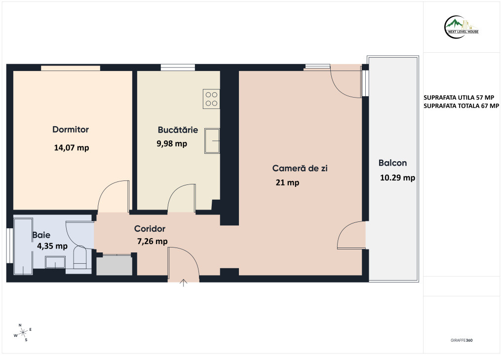 Oferim spre vânzare un apartament cu suprafața utilă de 57 mp și balcon generos de 10,3 mp, perfect pentru momente de relaxare. Proprietatea este compusă din: cameră de zi, dormitor, bucătărie, baie cu geam, hol și balcon.