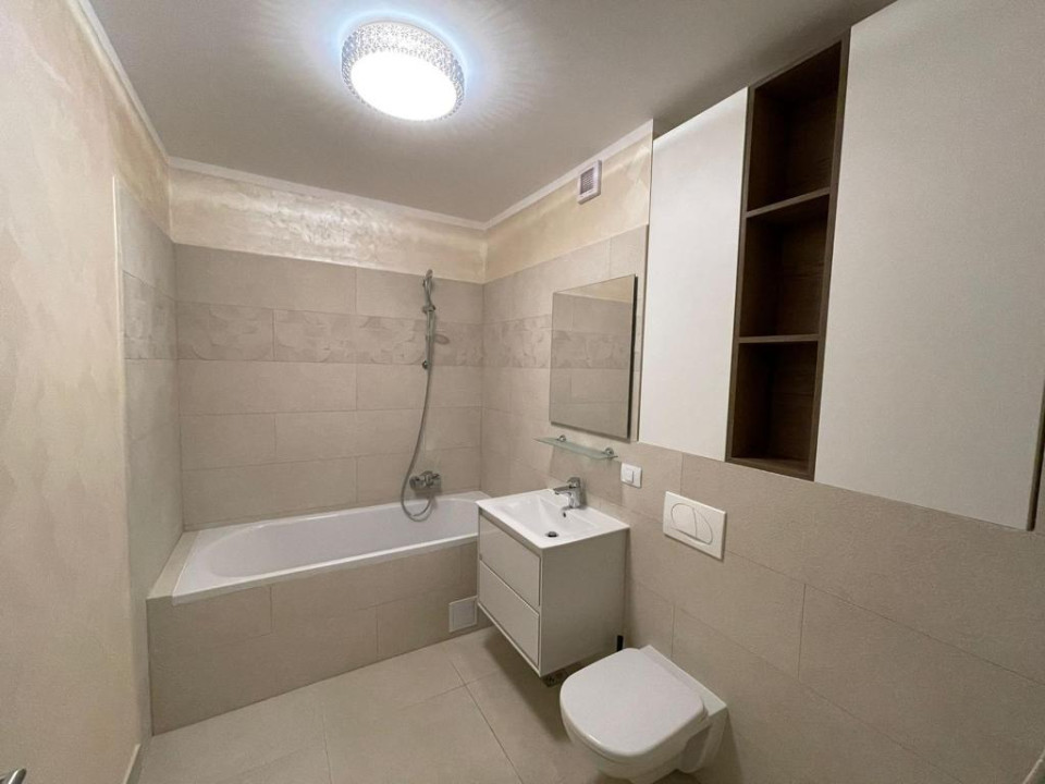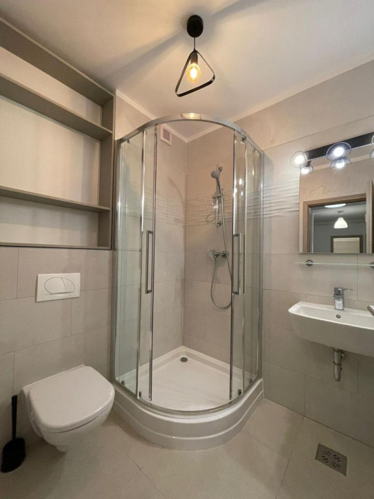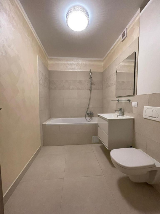 Acest apartament dispune de doua bai, una cu cada si una cu dus, pentru confortul dumneavoastra. Mobilierul si echipamentele sunt de inalta calitate, asigurandu-va un stil de viata confortabil si elegant.