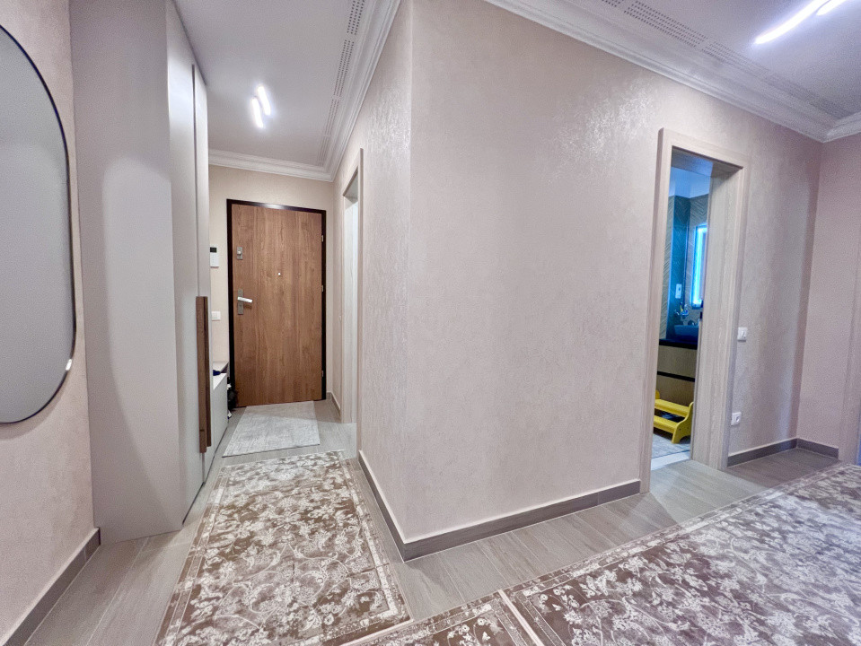 Acest apartament este perfect compartimentat, având o camera de zi primitoare, un dormitor matrimonial cu baie proprie si zona de dressing, un al doilea dormitor, o baie suplimentară cu acces din hol, o bucătărie modernă, hol, debara și un balcon pentru momente relaxante.