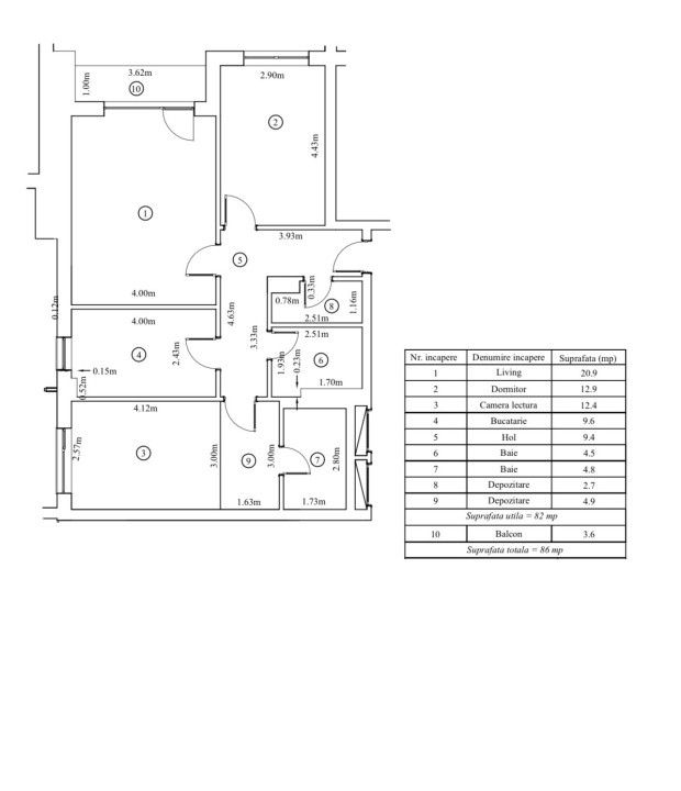 Suprafața utilă este de 82 mp, iar balconul are 3,6 mp, oferindu-vă un spațiu generos și luminos.