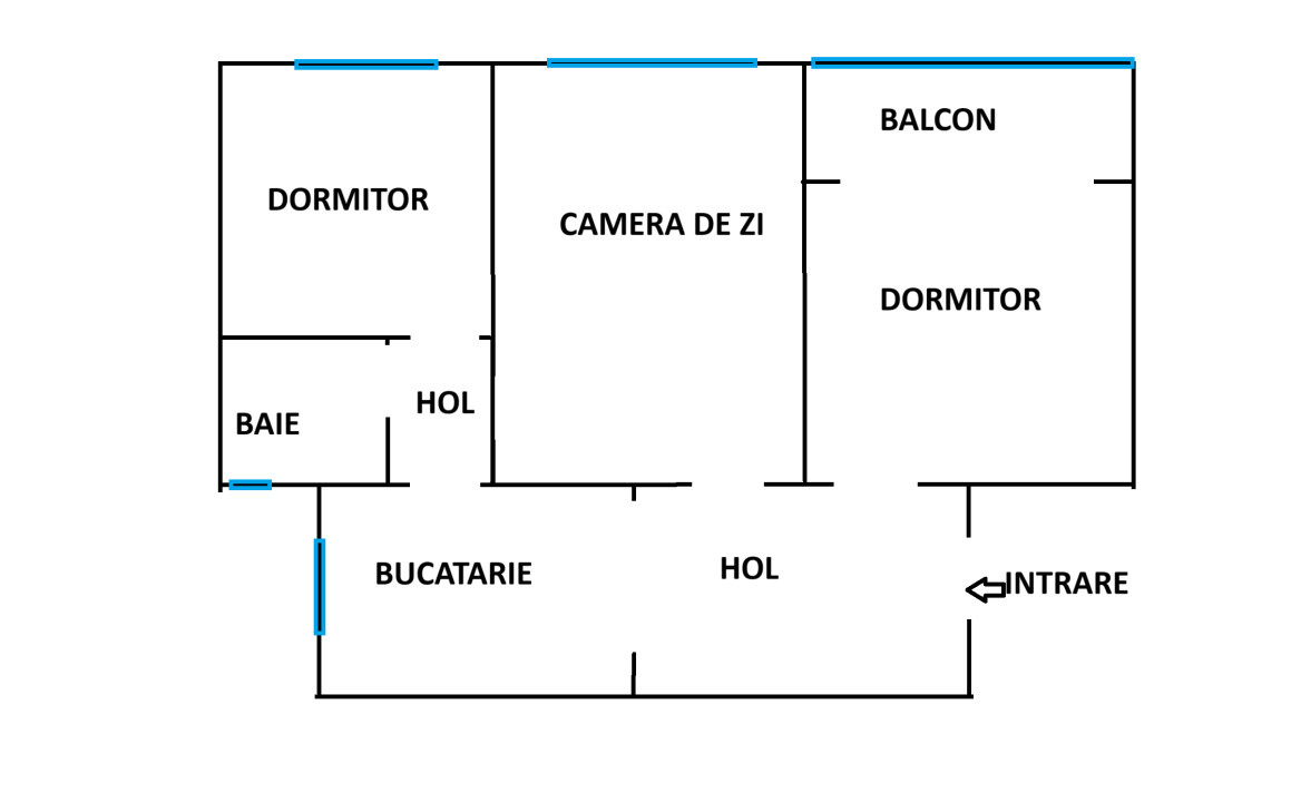 Apartamentul are o suprafata utila de aproximativ 60 mp + un balcon. Este compus din: camera de zi, 2 dormitoare, bucatarie, 2 holuri, o baie, debara si balcon.