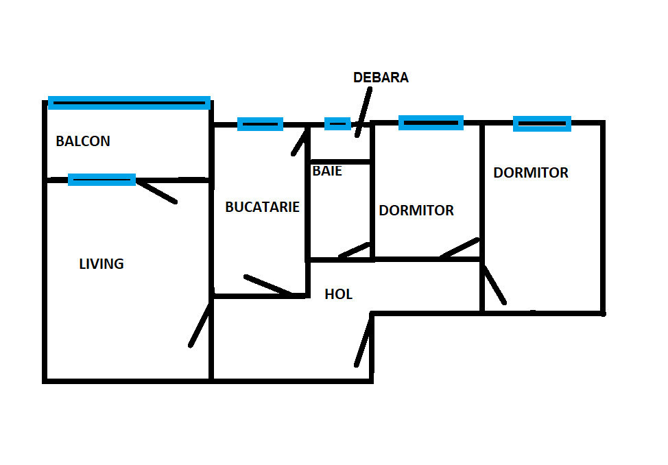 Apartamentul are o structura decomandata, cu o suprafata utila de 62 mp + un balcon. Este compus din: camera de zi, 2 dormitoare, bucatarie, hol, o baie, camara si balcon.