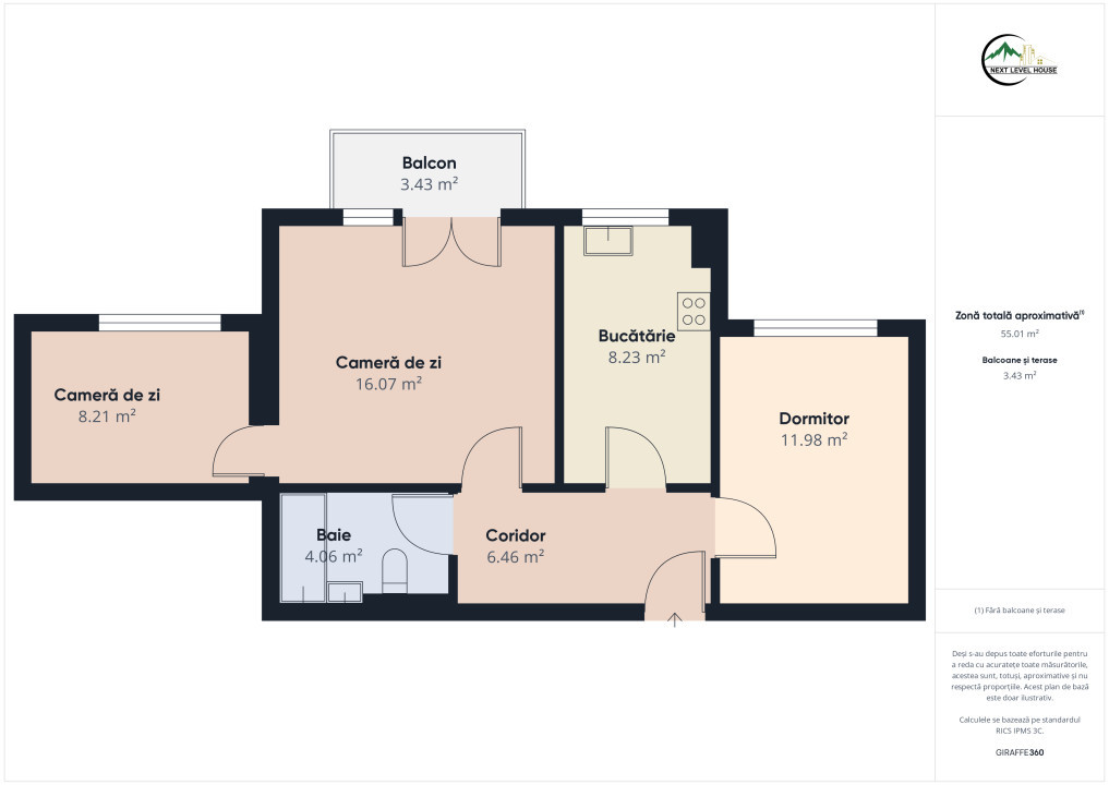 Suprafață utilă: Aproximativ 56.5 mp + balcon de 4 mp