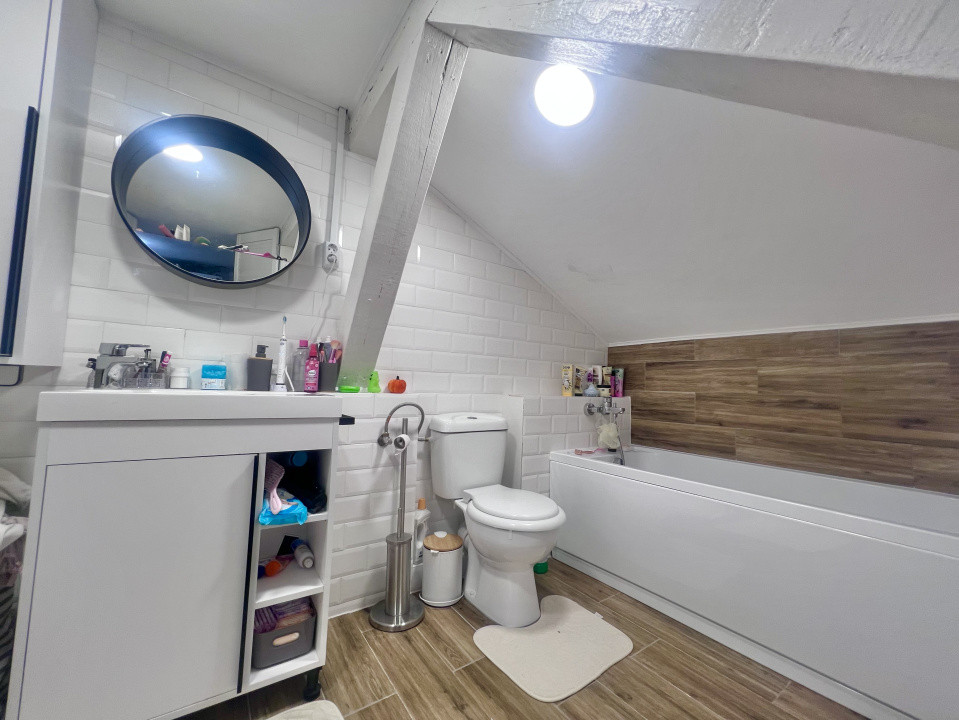 Apartamentul are o suprafata utila de aproximativ 90 mp, avand extindere in mansarda. A fost initial apartament de 2 camere de 53 mp utili + extinderea in mansarda( unde au fost amenajate un dormitor, hol, a doua baie si zone de depozitare).