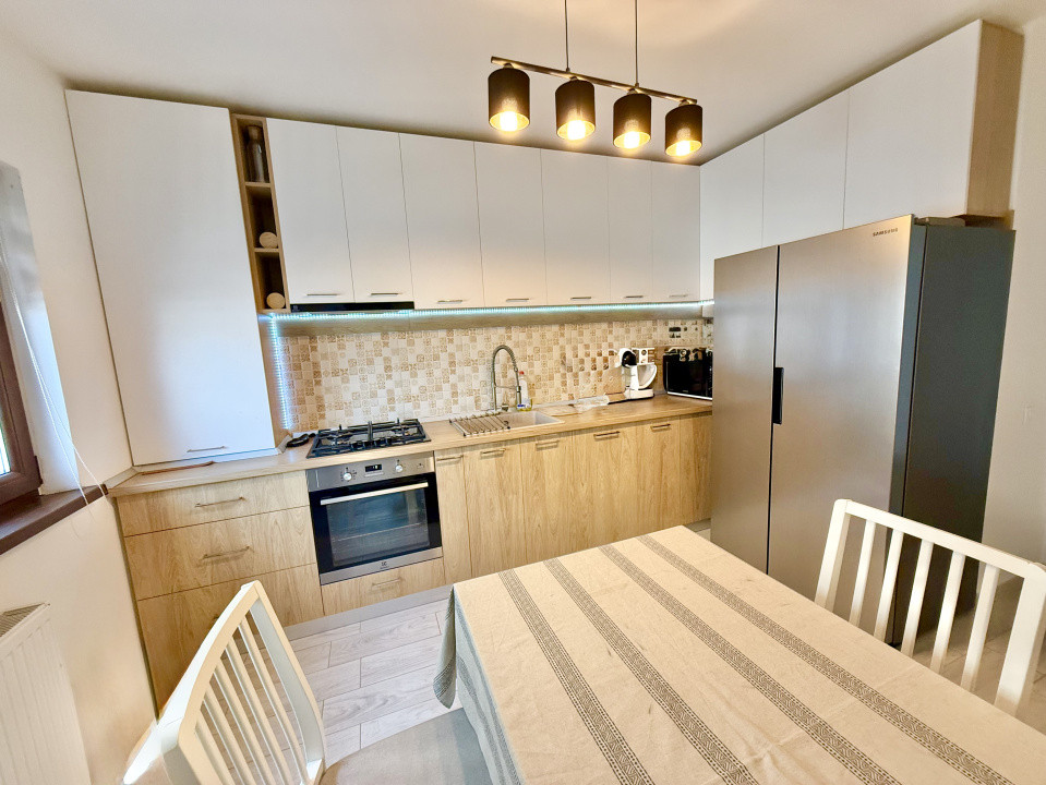 Proprietatea este mobilata si utilata( combina frigorifica, plita, hota, cuptor, masina de spalat rufe, masina de spalat vase incorporabila, televizor), conform imaginilor de prezentare, cu exceptia dormitorului mic.