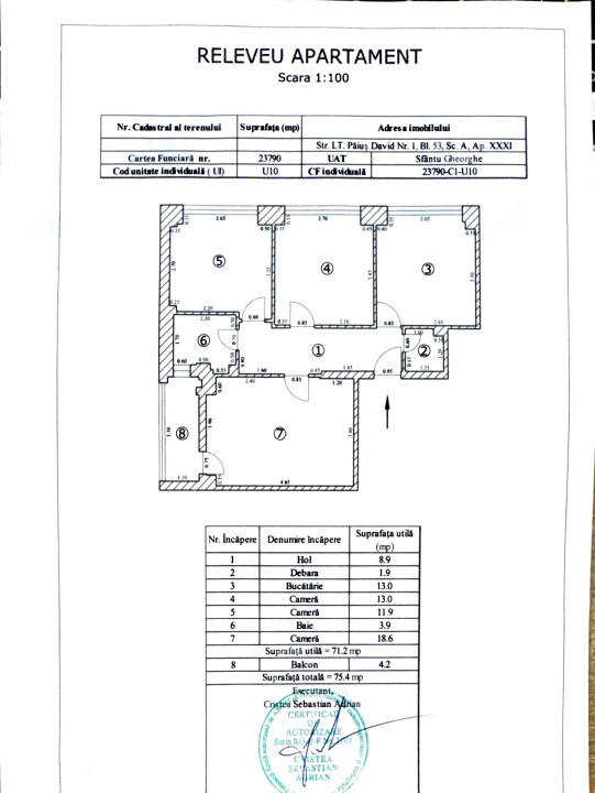 Suprafața utilă este de 72 mp, iar balconul are 4,2 mp, oferindu-vă un spațiu generos și luminos.