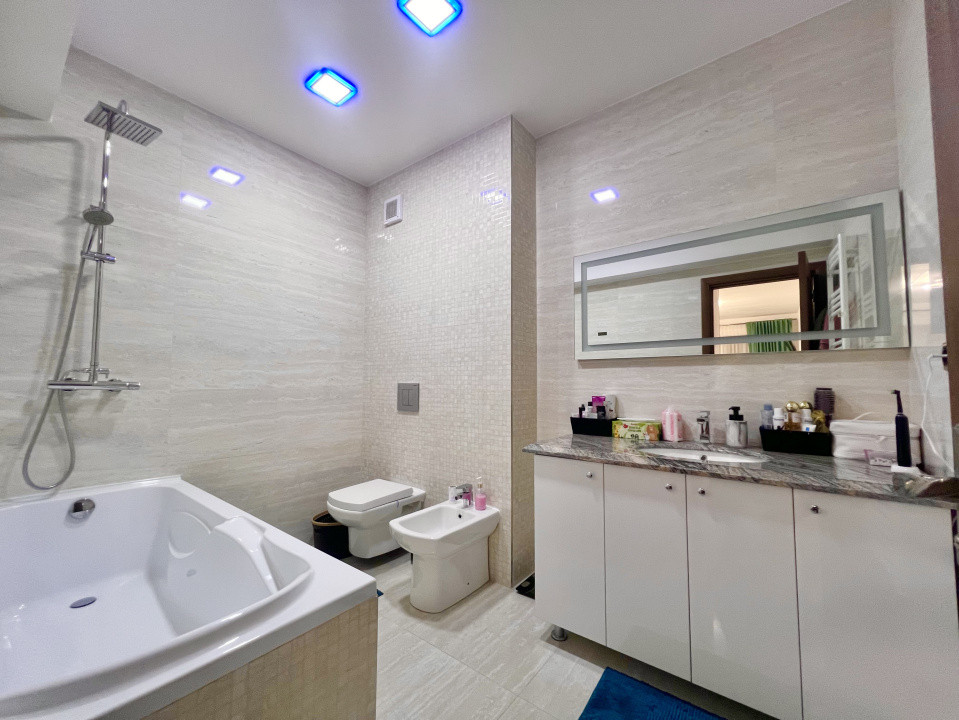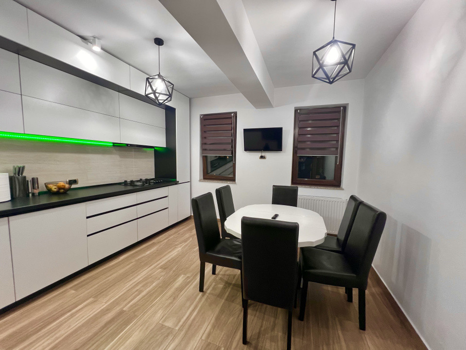 Proprietatea se vinde mobilata si utilata, conform imaginilor de prezentare( electrocasnoce bucatarie incorporabile, masina de spalat vase, masina de spalat rufe, combina frigorifica, 3 televizoare dintre care cel din living cu diagonala de 202 cm).
