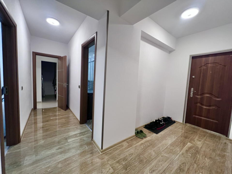 Apartamentul are o suprafata utila de 95 mp + un balcon de 9,2 mp. Este compus din: camera de zi ( 25,3 mp), bucatarie ( 15,9 mp), 2 dormitoare( dintre care unul matrimonial cu dressing si baie proprie), hol si balcon.