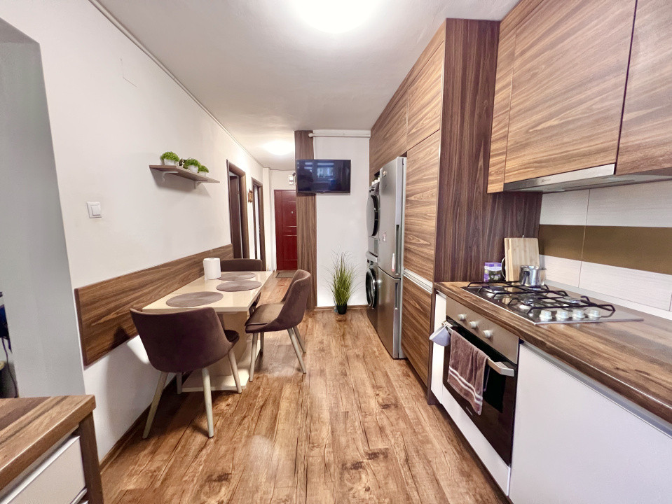 Proprietatea a fost renovata integral in 2020 si se vinde complet mobilat si utilat (excluzand televizoarele). Mobilierul si electrocasnicele noi imbina modernul cu utilul, intrucat au fost create multiple spatii de depozitare.