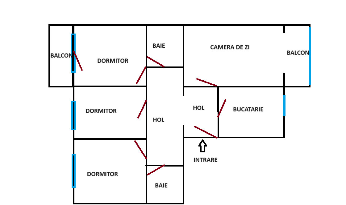 Apartamentul are o suprafata utila de aproximativ 80 mp + 2 balcoane. Este compus din: camera de zi, 3 dormitoare, bucatarie, hol, 2 bai si 2 balcoane.