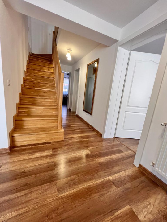 Dispune de un teren de 300 mp, curtea fiind amenajata cu spatiu verde.