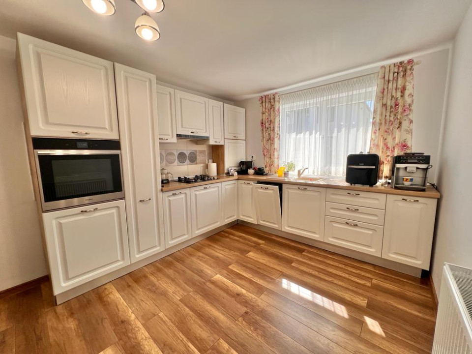 Se poate vinde cu bucataria mobilata la pretul de 153.000 Euro sau complet mobilata si utilata( inclusiv televizoare, masina de spalat, cu exceptia dormitorului de la parter) la pretul de 165.000 Euro.